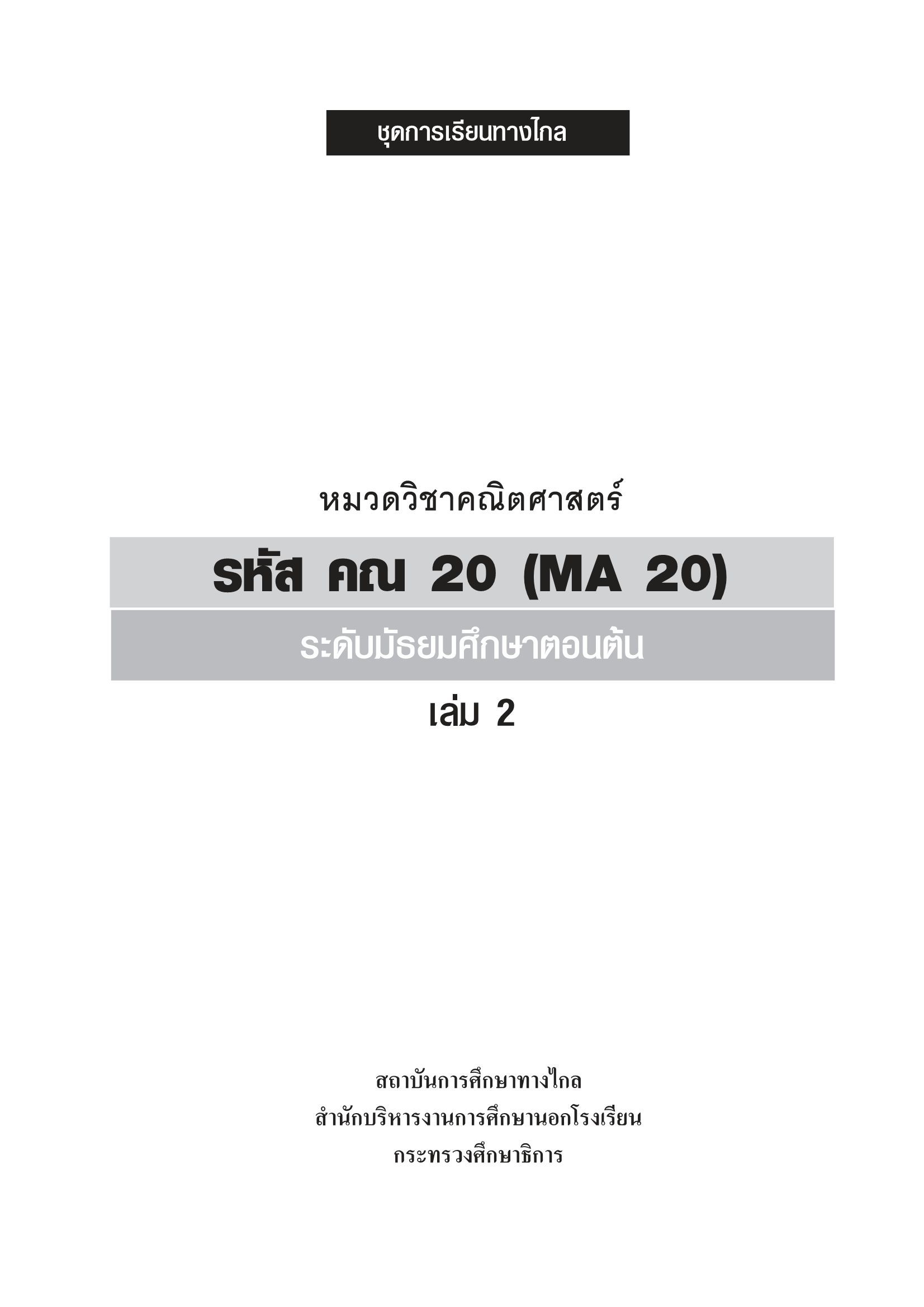 ชุดการเรียนหมวดวิชาคณิตศาสตร์ (MA20) เล่ม 2 ระดับ ม.ต้น