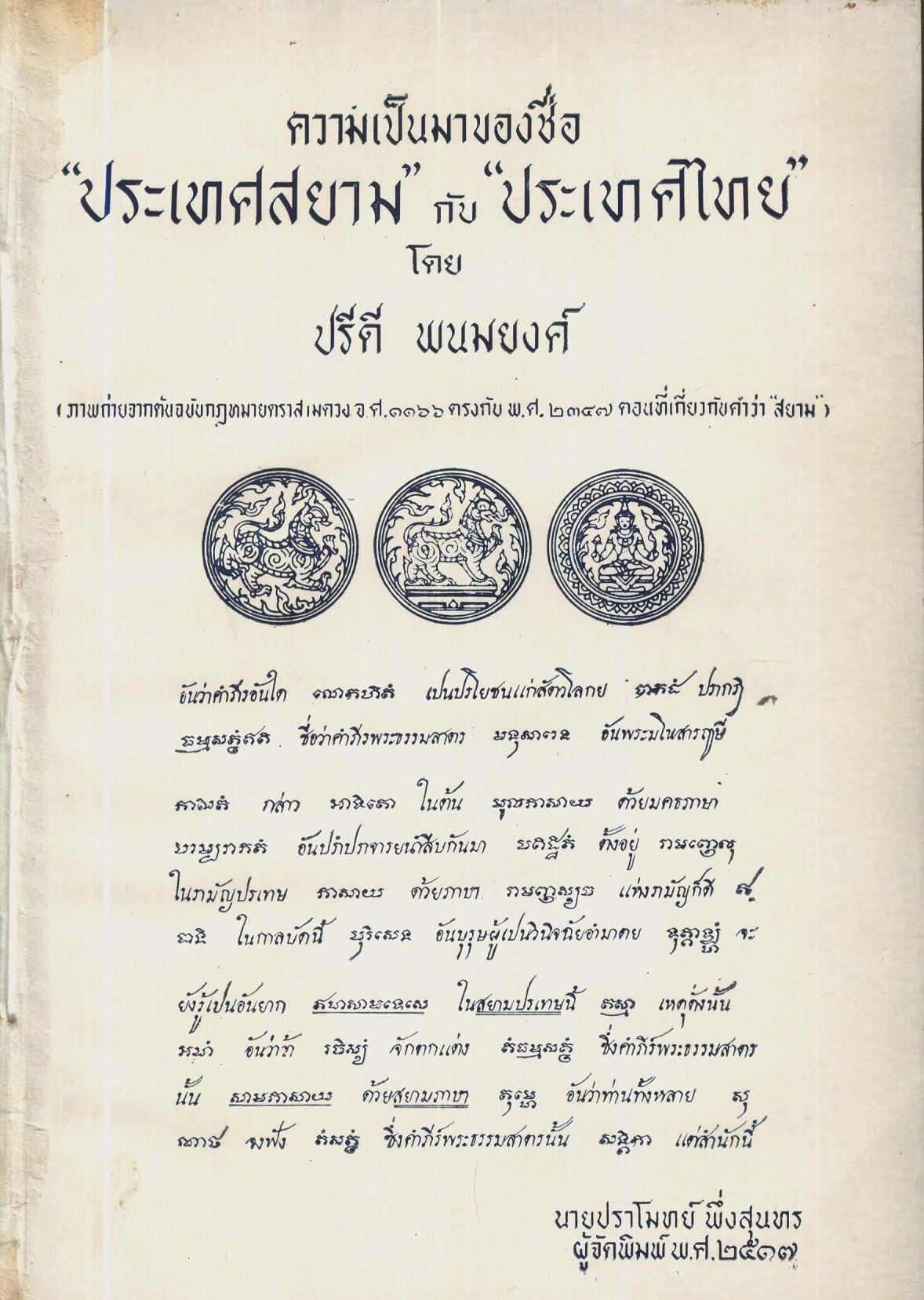 ความเป็นมาของชื่อ ประเทศสยาม กับ ประเทศไทย